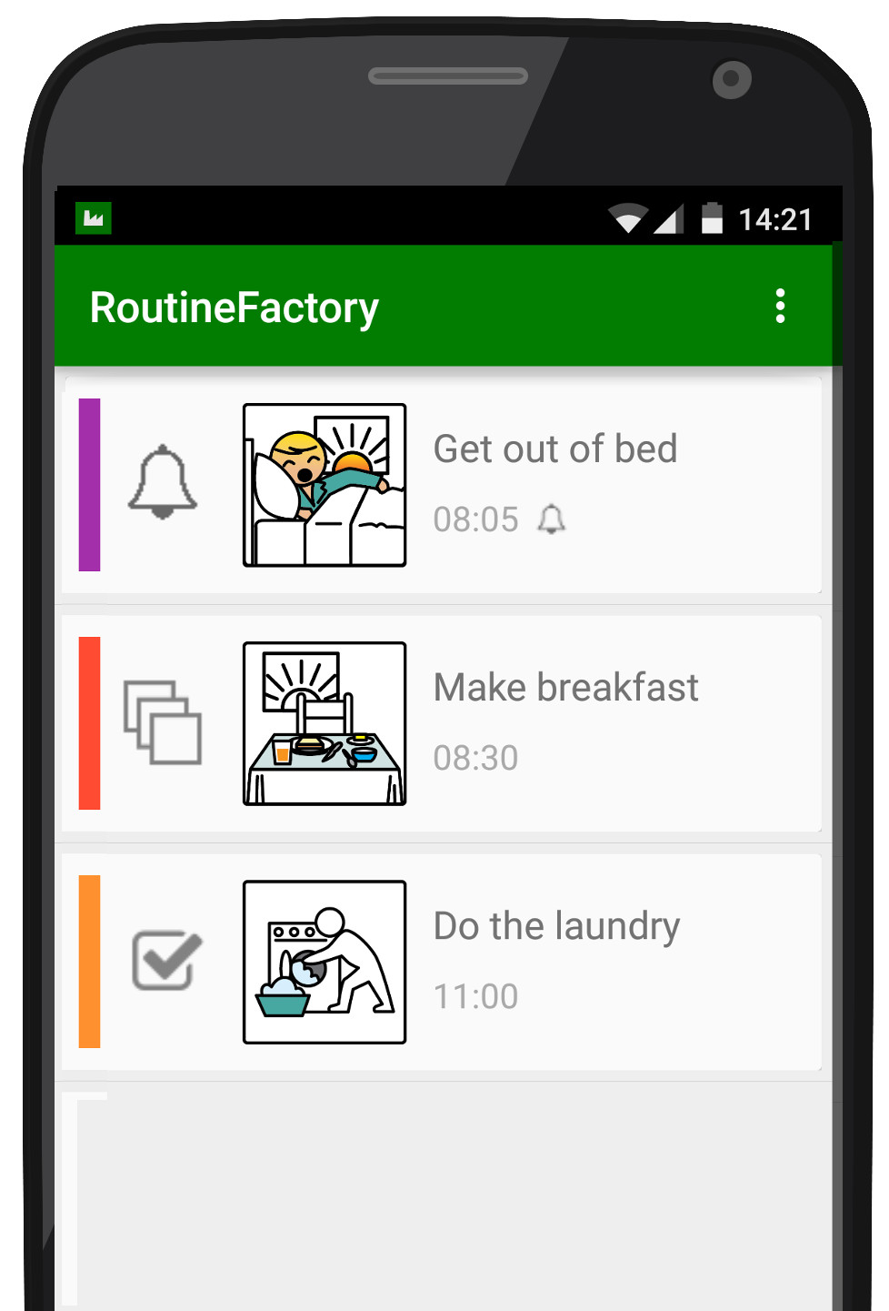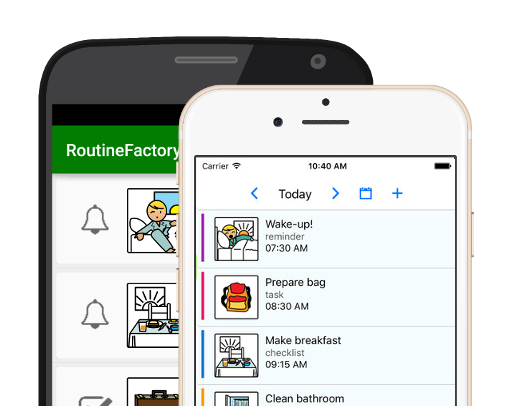 This is where the RoutineFactory app on phone & tablet can help! With clear visual schedules, checklists, repeating alarm signals, and much more.