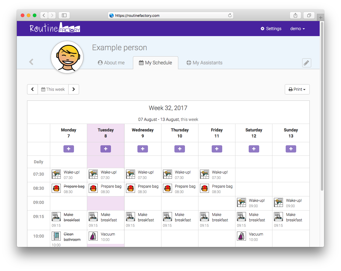 RoutineFactory is adaptable to the situation and needs for a person with special needs. Just try it out!