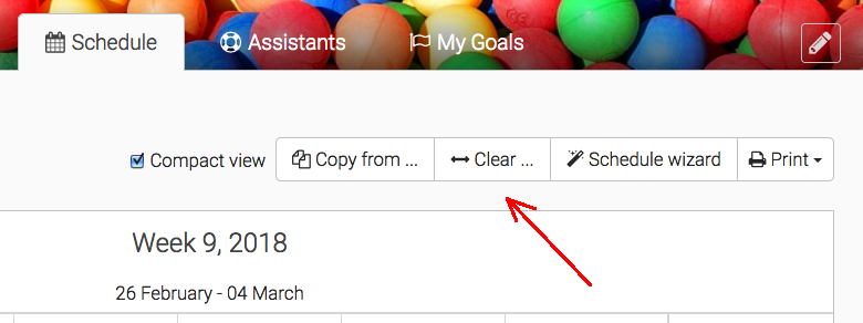 You can clear a specific period of all tasks, events, and assistants. This function can be used during a holiday or vacation period where a break in regular routine occurs.